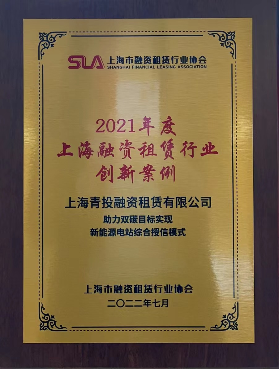 榮獲上海融資租賃行業(yè)“綠色租賃領域創(chuàng)新案例獎”