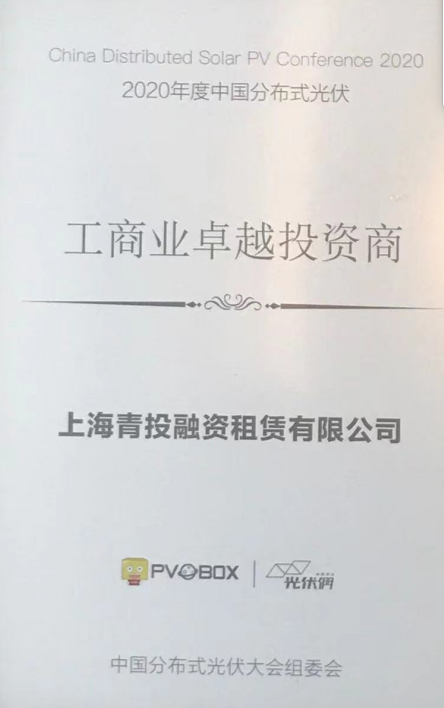 榮獲年度中國分布式光伏工商業(yè)卓越投資商